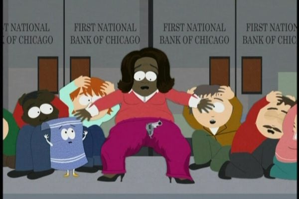 While Towelie can be a fun side character, he was intentionally created to be the lamest character ever, and as such, can’t carry an episode on his own. Beyond that, there’s also the plot of (I can’t believe I’m writing this) Oprah Winfrey’s vagina and asshole plotting to get her fired from work and eventually hold up reporters at gunpoint.