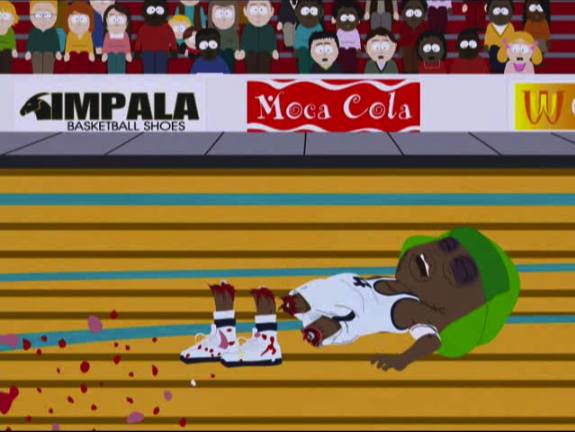 Garrison’s transformation into Mrs. Garrison inspires both Kyle and his dad to have their own cosmetic surgeries. Specifically, Kyle wants to be made black and taller because it will apparently allow him to play basketball, while his dad sporadically decides he always wanted to be a dolphin. As offensive as that joke is in implying those various surgeries are comparable, the biggest problem, again, is the gag makes no sense.